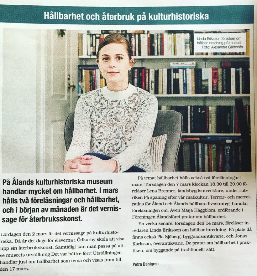 Tills nu har jag alltid jobbat hemifrån men framöver kommer jag att vara stationerad på Ålands Natur och miljö en dag i veckan till att börja med. Det ska bli så härligt med lite miljöombyte och nya kollegor! Dessutom passar det ju ypperligt att arbeta på just Ålands natur och miljö. Jag har nämligen bestämt mig för att nischa mig ännu mer åt det hållet. Jag kommer därför inte att fortsätta arbeta med Homestyling. Det är för mycket slit och släng och ytlighet för att jag ska kunna stå för det. Jag kommer istället att jobba mer med miljövänliga renoveringsmetoder och hållbar inredning framöver.