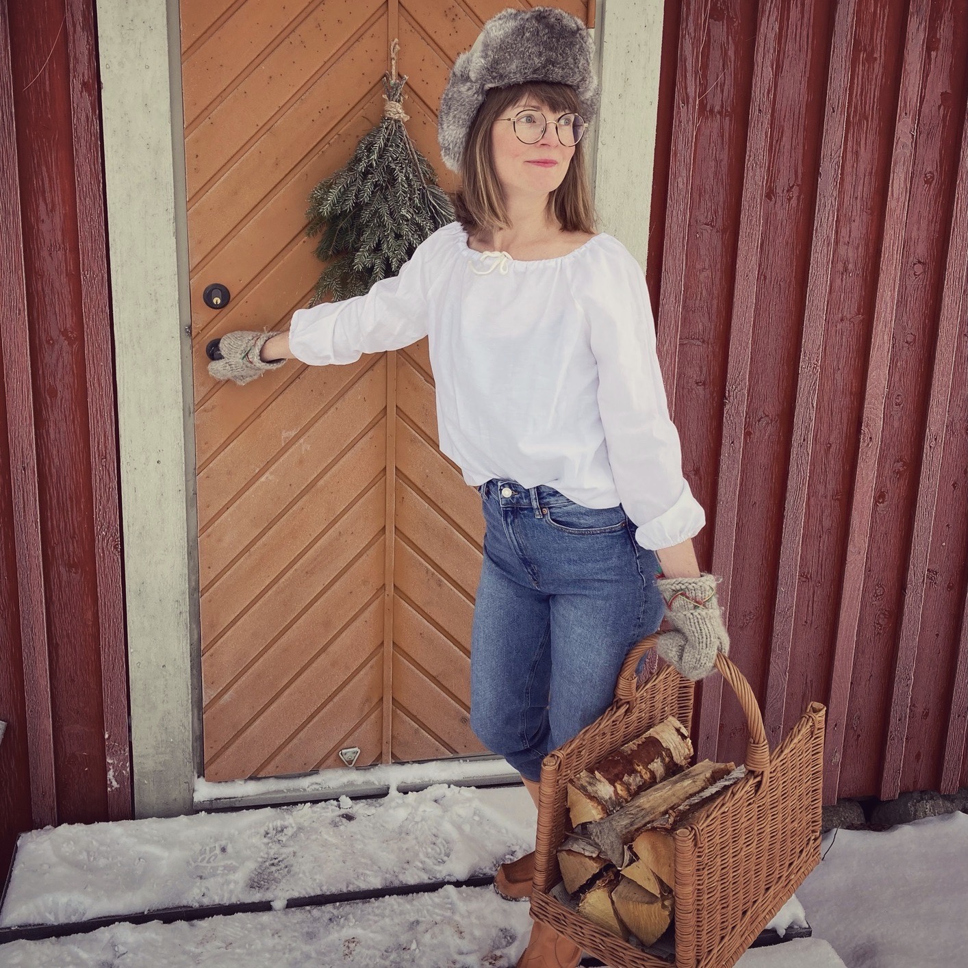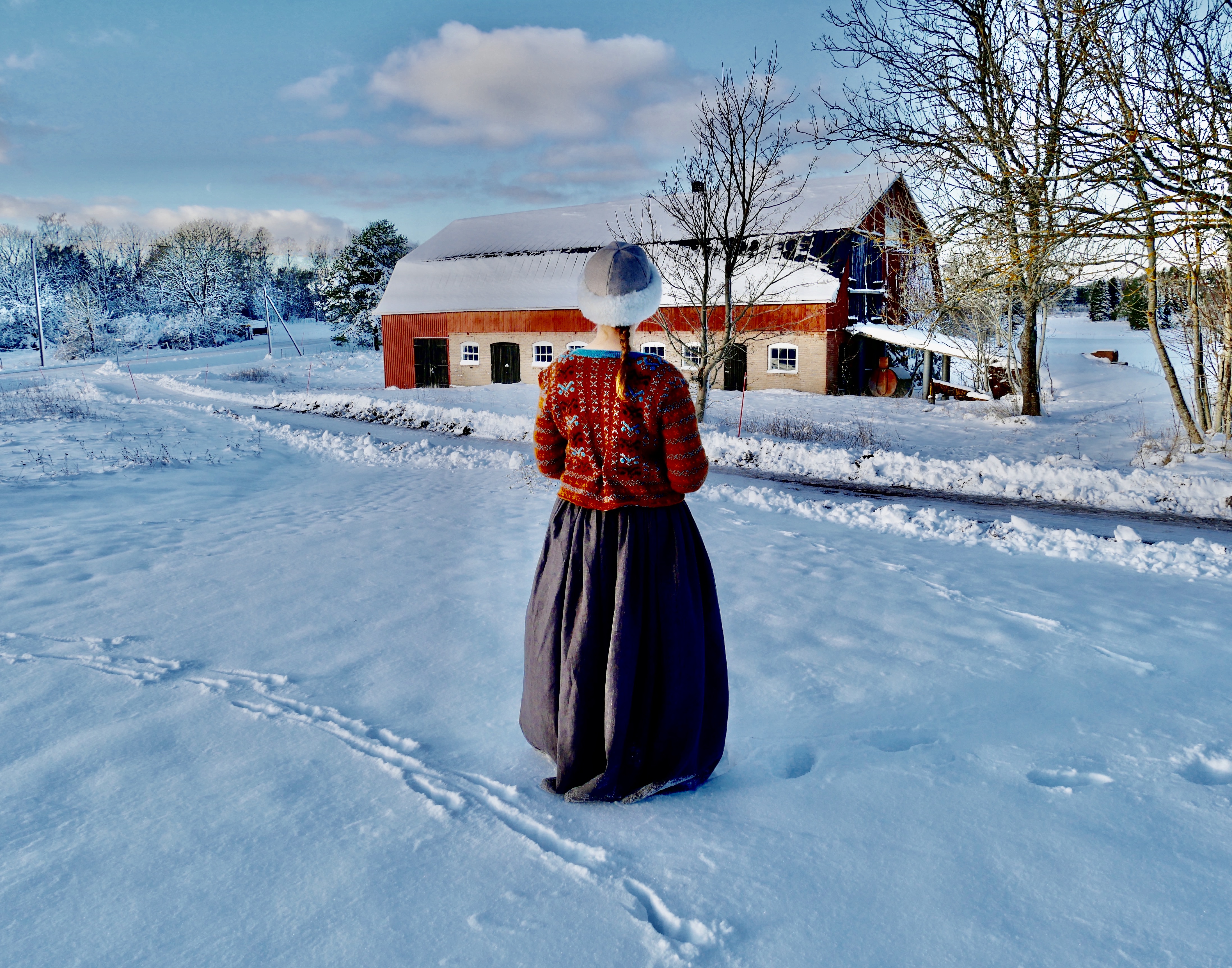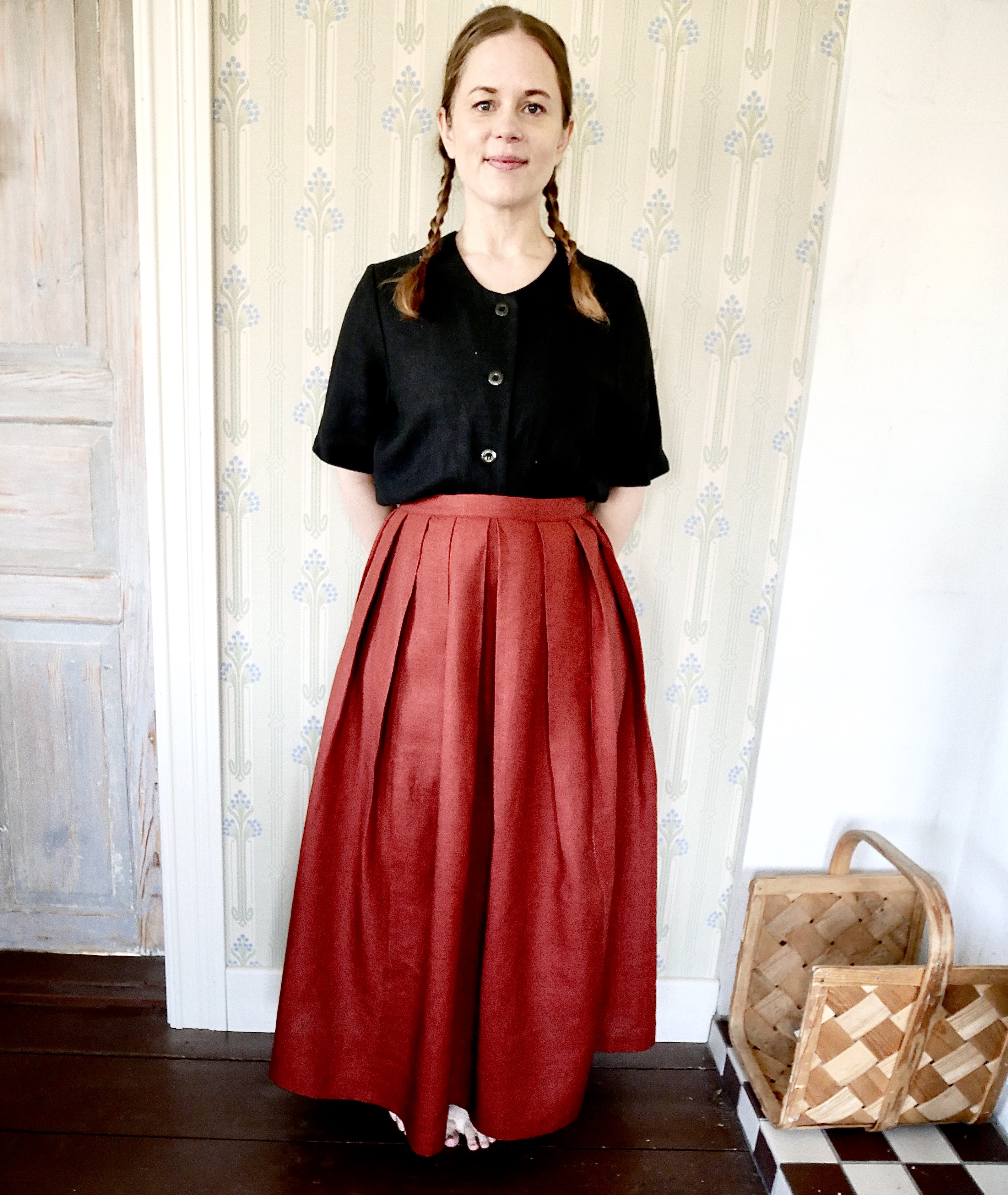 Jag syr nya kläder med inspiration från 1800-talet. Tanken är att ta vara på våra fina traditioner i ett bekvämt plagg för dagens kvinnor. Beroende på hur man kombinerar kläderna passar de både till vardag och fest.