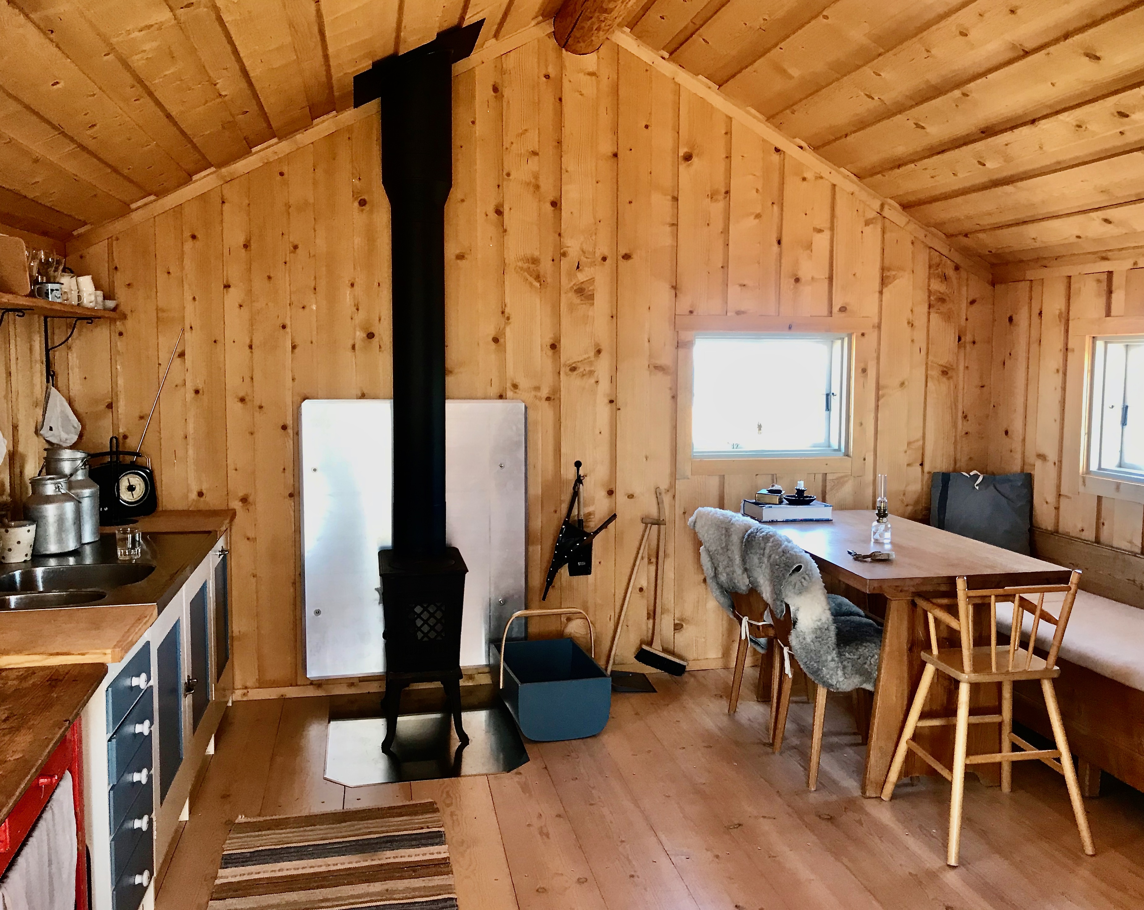 Bekvämligheter som finns är följande: Två sängar om 120 cm, bäddsoffa i bastukammaren, vatten i dunk, basutrustning för matlagning, porslin, bestick, kyl, frys, spis, grill, fiskerök, täcken och kuddar, sängkläder, tvål och toalettpapper, rengöringsprodukter, solcells- och fotogenlampor, mindre solpanel med usb-uttag för tex. telefonladdare, bastu, öppen spis, spel och böcker, filtar, utemöbler, solstolar, ved till bastubad, roddbåt och fiskespön, brand och gasvarnare, kolmonoxidlarm, brandsläckare. Husdjur, fester och rökning ej tillåtet.